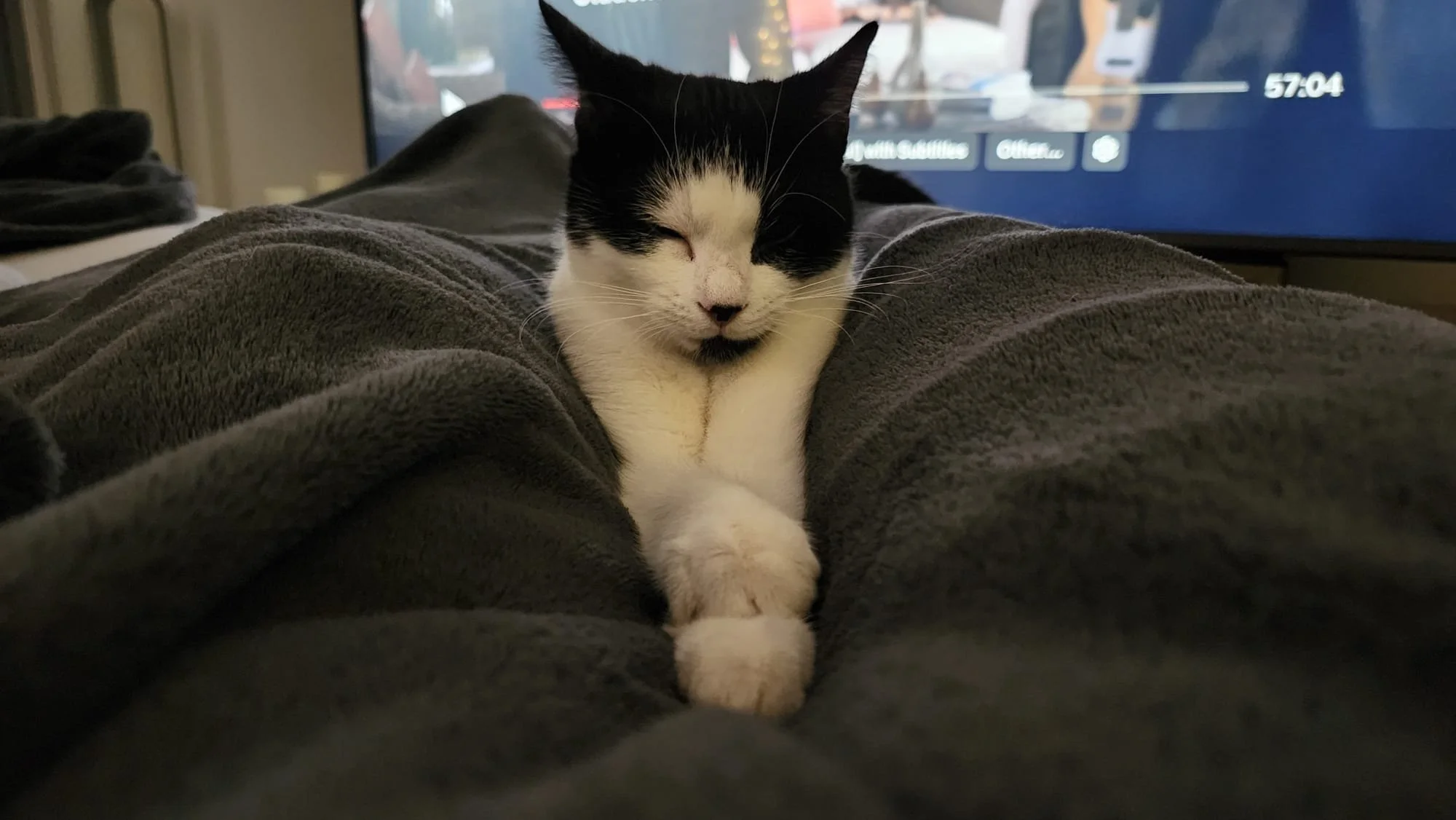Buttons established himself quickly as a proactive snuggler, while Boo took her time warming up. Both are now champion cuddlers, climbing under the blankets to enjoy a Netflix night with mum and dad.
